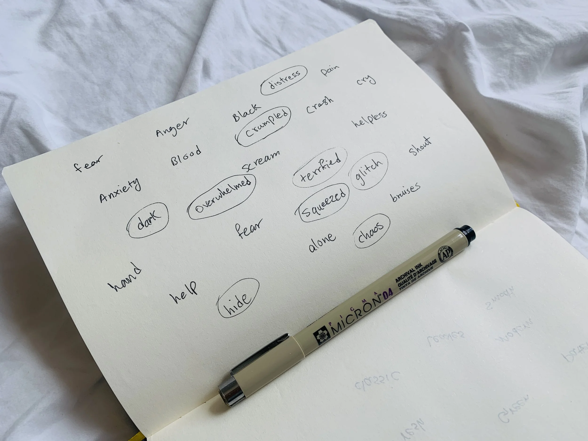 While listening to the poem I tried to brainstorm and list all feelings that associated with the context. I used this list as inspiration for my initial sketches, and for the final design.
